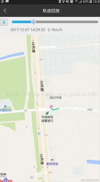 - 行驶轨迹保存在本地数据库,实际项目中需要隔几秒上传一次踩点列表到服务器,还要防止APP被杀死或其它异常导致以前踩点消失。