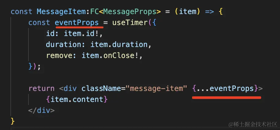 比如 @floating-ui/react 包的 useInteractions,就是返回 props 对象,类似 {onClick: xxx} 这种,让调用者自己绑定: