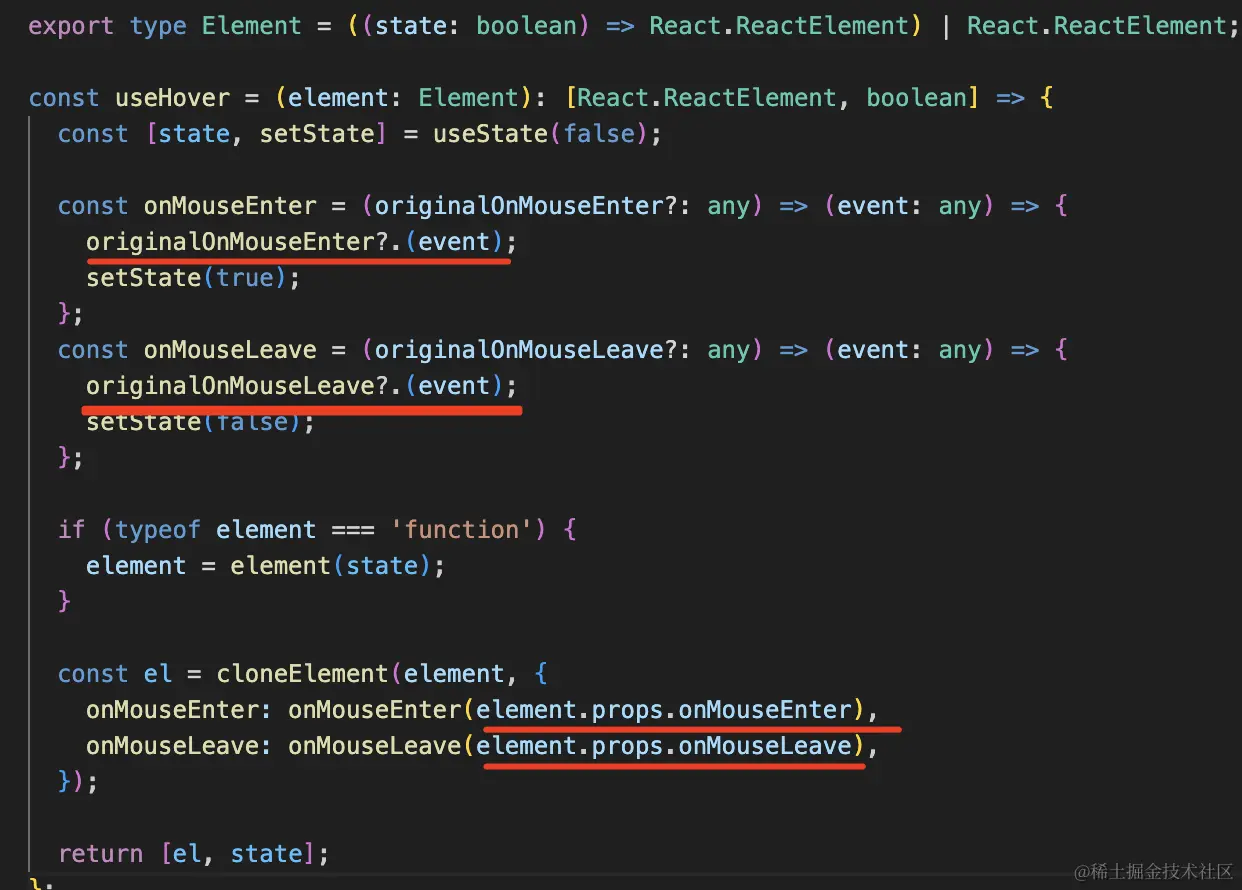 这里注意如果传入的 React Element 本身有 onMouseEnter、onMouseLeave 的事件处理函数,要先调用下: