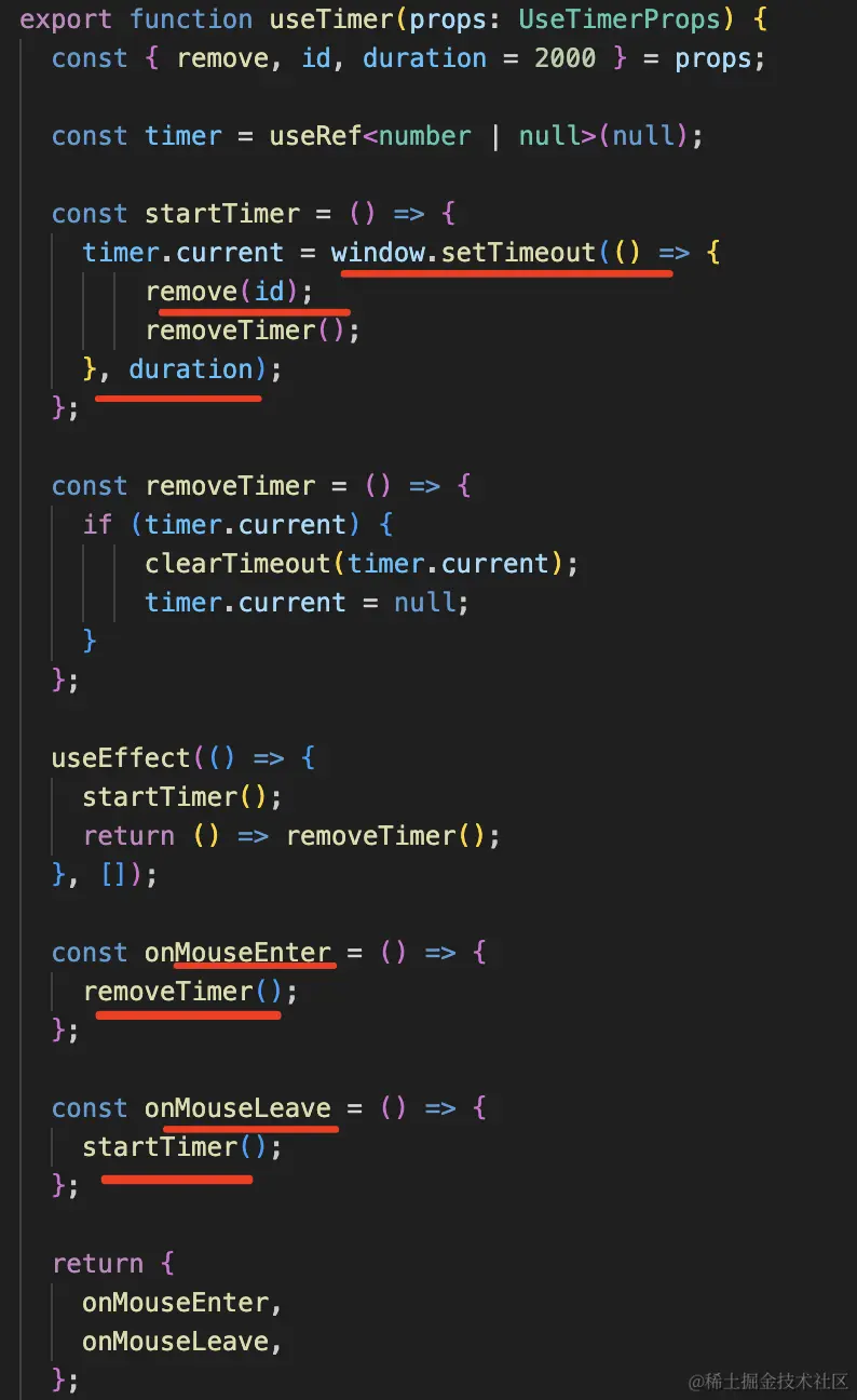 它提供了 onMouseEnter、onMouseLeave 事件处理函数,mouseEnter 的时候移除定时器,mouseLeave 的时候重新定时,然后到时间删除: