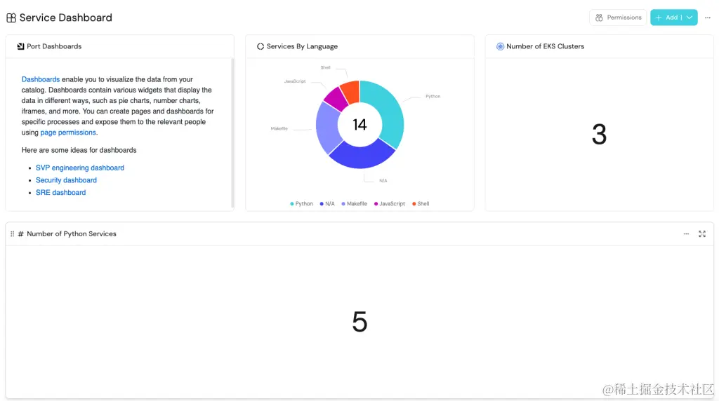 以下是服务仪表板,它显示了门户中拥有的服务(主要是 GitHub 存储库和微服务)。您可以看到,我在这里添加了一些信息:右侧显示了我拥有的 EKS 集群数量,该数量直接取自我们已部署并通过 Upbound 管理的 EKS 集群。