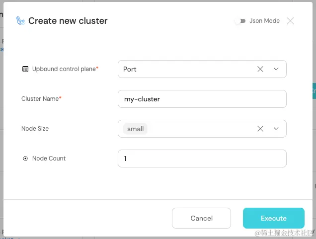开发人员可能需要一个新集群,因为他们正在开发一个新功能。他们可能需要诸如容器之类的资源来运行数据库或缓存,并且他们希望自己的应用程序与之一起运行。如果平台工程师公开了请求新集群的操作,则开发人员可以导航到自助服务中心并单击“请求新集群”。他们可以再次填写表单,并将节点大小和节点计数等输入保留为默认值,因为它们对开发人员来说可能意义不大。如果需要,平台工程师可以在以后解决此问题。然后,他们可以单击执行,平台工程师将请求并审查集群,如我们在下一部分中所见。