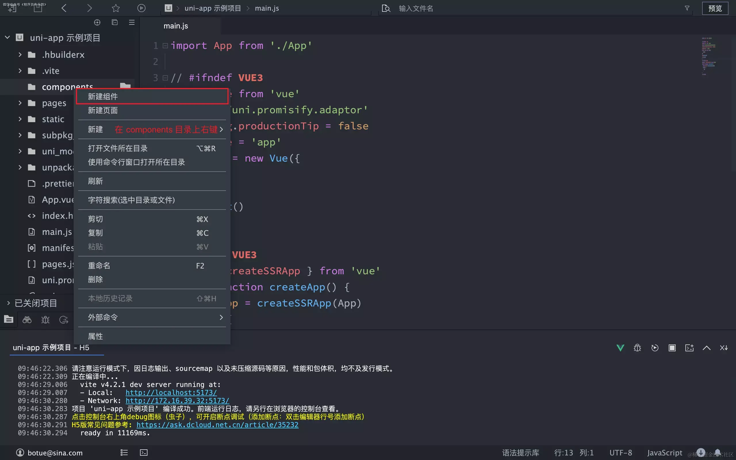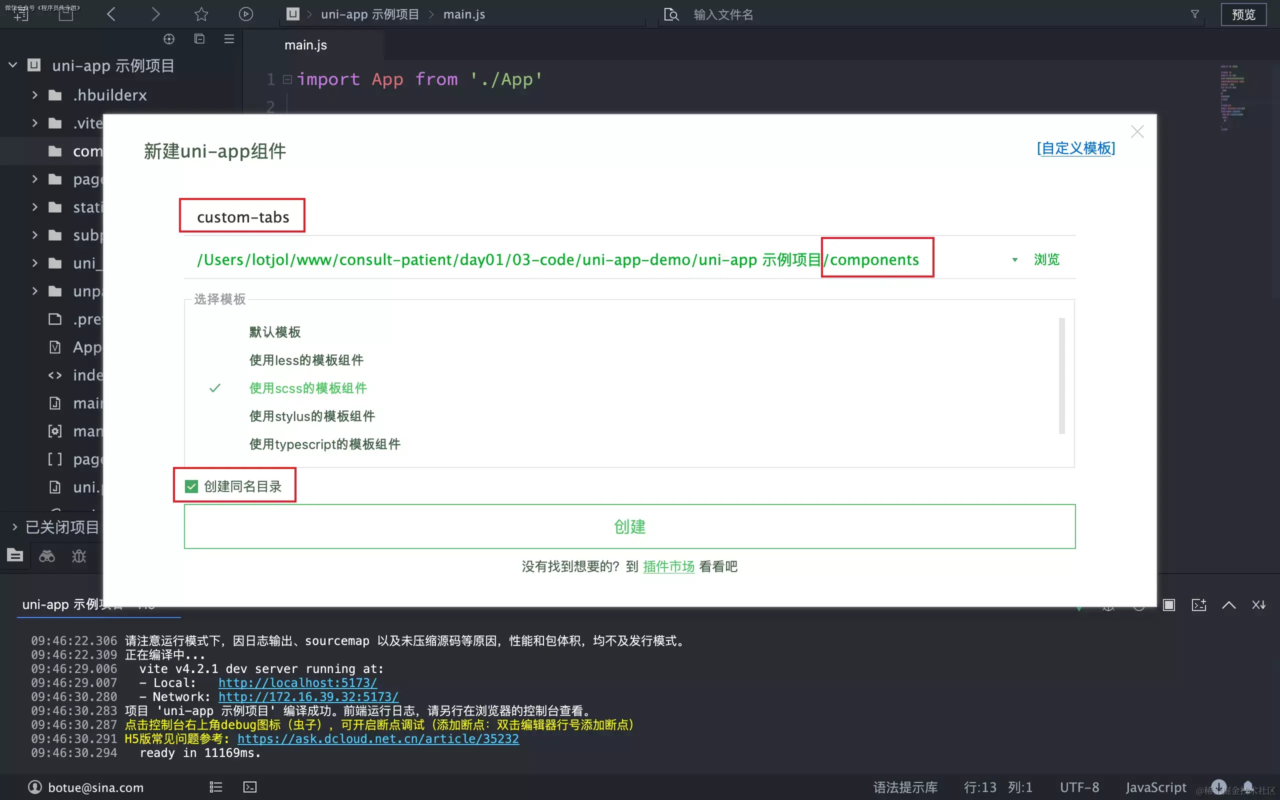 在 uni-app 中自定义组件的定义与 Vue 组件基本一致,不要参照原生小程序方式来定义组件。