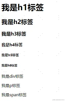 h[1~6]、div、p为块级别元素,独占一行,一般用来声明段落;