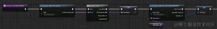 创建函数Generate Gameplay Effects,首先获取表中全部RowNames,再依次读取对应的表数据的结构体