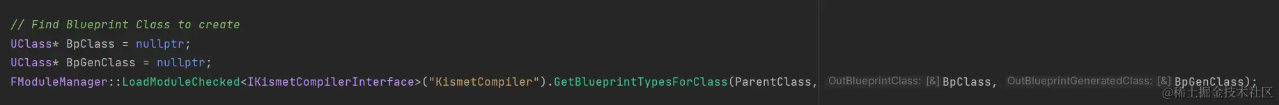 - 输入ParentClass获取对应的蓝图类,和生成的蓝图类。C++类创建蓝图派生类为什么还需要生成一个蓝图类,这一块我了解的并不深入,如果有大佬可以帮我解答一下,非常感谢。
