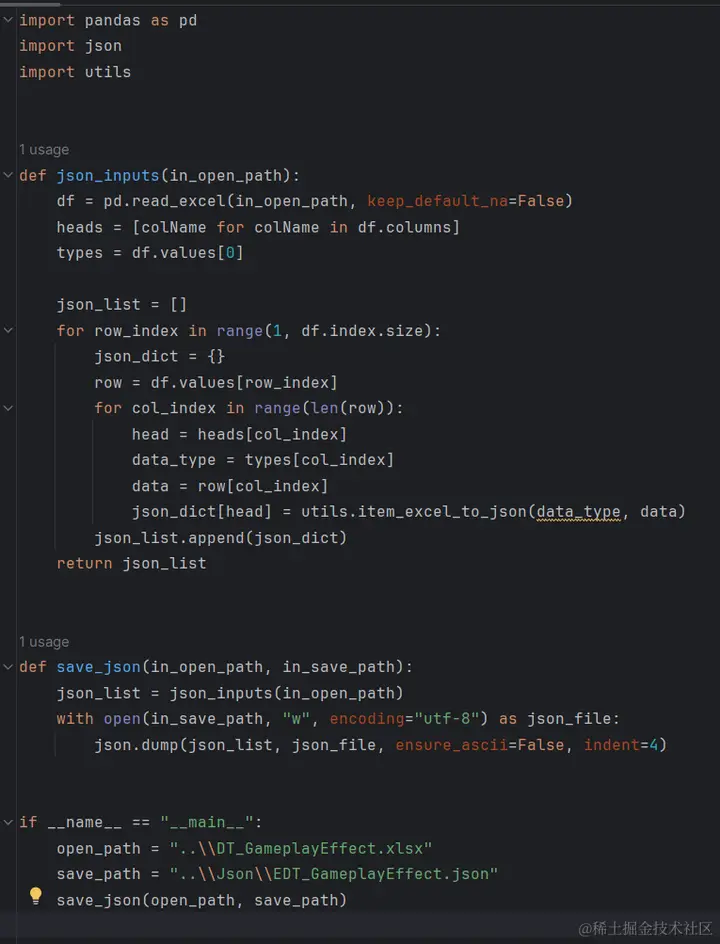 - 在编辑器中,我们会用DT去维护GE表,DT可以通过Json进行导入,那么需要实现功能:将excel转为UE的DataTable所需的Json数据,这个部分我会使用python作为脚本代码实现。