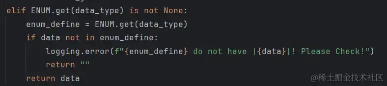 如果data_type在枚举字典中存在,那么首先判断excel单元格的数据是否存在,如果不存在则报错,进行一个检查