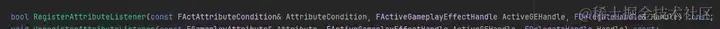 核心代码其实就最后这一句话,监听指定属性的变化,然后触发OnAttributeChange函数,在这里判断属性条件,决定是否应该将GE移除。这里需要将DelegateHandle的引用返回