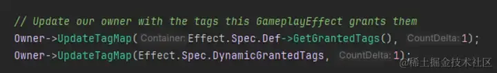 GE生效的函数为AddActiveGameplayEffectGrantedTagsAndModifiers
