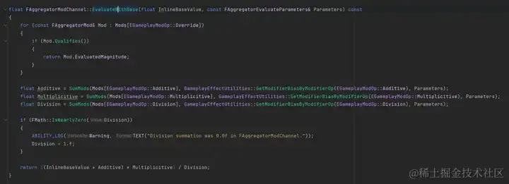 首先从头开始缕,Attribute都具有Base值,它可以被理解为一种固有的属性,一旦修改便会永久改变。然后Current值可以理解为Base值被各种”暂时“效果修饰后的值。这种修饰就是一种Mod,GAS中的Mod有Add, Multiply, Divide, Override四种。最终的current值就是由多个Mod共同影响后决定的。