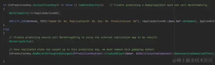 对于服务端,在创建ActiveEffect后,会走到上面代码的if分支,调用ActiveEffectContainer的MarkItemDirty函数,通过FastArray的属性同步,将ActiveEffect的数据从服务器同步到客户端。