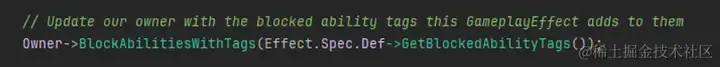 GE对Ability的影响还有一个,可以block ability,依据Ability中配置的BlockTags条件,停止当前正在激活的技能。