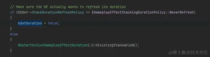 如果GE的DurationRefreshPolicy为NeverFresh,设置bSetDuration为false,如果bSetDuration为true,此参数会在后面重新刷新GE的持续时间