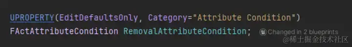 然后创建GameplayEffectComponent的派生类。其中有成员变量RemovalAttributeCondition,作用是说明当特定的属性满足条件后,应将此Component的GE给移除。