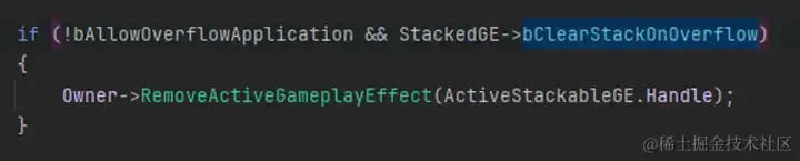 如果当前ActiveEffect的stack count等于def的StackLimitCount,表示新的GE已经无法继续堆叠了,处理overflow。