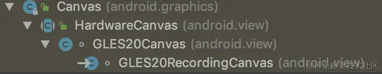 - 在RenderNode.start()中调用GLES20RecordingCanvas.obtain(this)获取HardwareCanvas对象,在GLES20Canvas中对Canvas的drawXXX方法进行重写