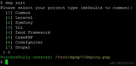 此命令生成deploy.php文件及其内容如下: