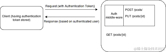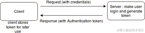 首先,我们需要了解身份验证和登录的工作原理。客户端应用程序首次发送登录凭据(通常是电子邮件地址和密码)。基于这些凭据,服务器端的登录端点进行用户登录并返回针对经过身份验证的用户的令牌。该令牌存储在客户端。在每个请求中,客户端都会在请求体或请求头中携带该令牌。可以在以下图表中更清楚地看到。