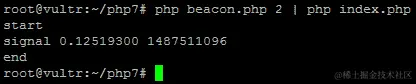 除了两个明显的开始/结束输出外,我们利用fgets()函数从标准输入中读取。stream_set_blocking()方法故意被暂时注释掉。请注意,这两个脚本完全不相关。index.php从未引用beacon.php文件。这是因为我们将使用控制台及其管道(|)来将beacon.php脚本的 stdout 桥接到index.php消耗的 stdin。
