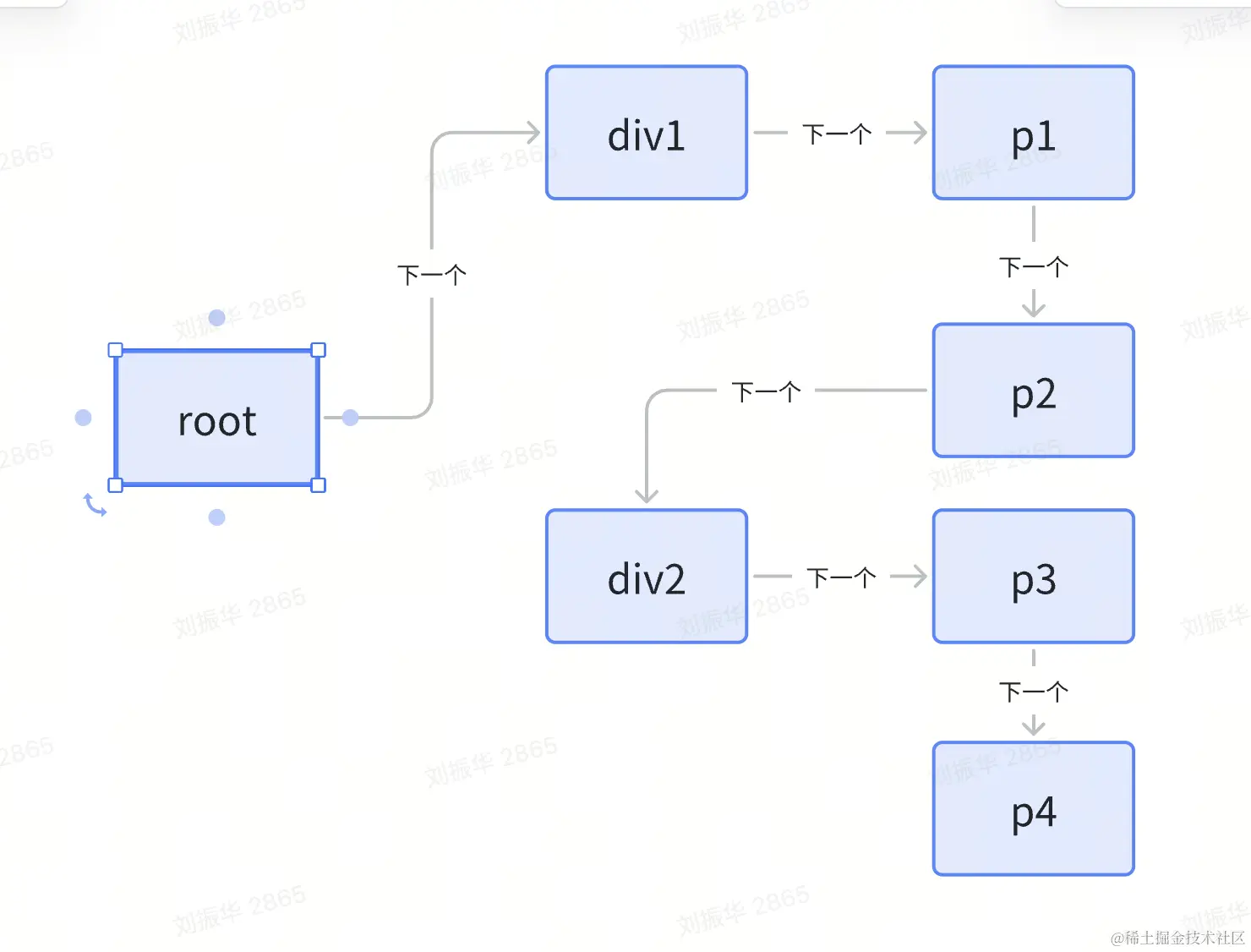 在下文变量命名中,我们统一将root和dom视为真实dom,node视为虚拟dom,同时为了大家能够更加直观的理解本文的内容,我们拿一个具体的案例去实现
