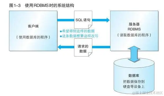 使用 RDBMS 时,最常见的系统结构就是客户端 / 服务器类型(C/S类型)这种结构(图 1-3)