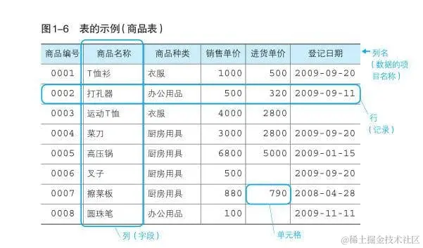 数据库中存储的表结构类似于excel中的行和列,在数据库中,行称为记录,它相当于一条记录,列称为字段,它代表了表中存储的数据项目。