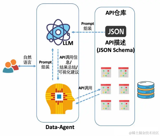 根据 LLM 的响应调用指定的 API,取得返回的数据。根据情况需要,在一些场景下可能还需要将返回的数据再附加到用户输入,再次交给 LLM,由 LLM 来输出最终响应给客户的分析结果。