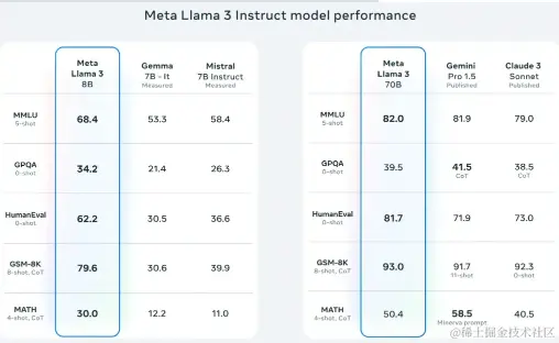 8B 和 70B 两个型号的模型,标志着 Llama 3 系列的开端,下一步还会有更多。