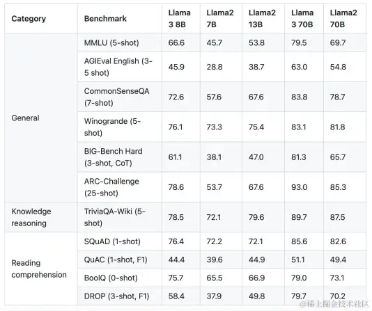 这次的 Llama 在性能上展现了大幅度提升,包括最直接的 8k 上下文(之前是4k),以及可以更好的完成输出任务。