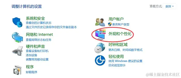 步骤2:在控制面板中,找到并点击 【外观和个性化】, 点击【屏幕保护程序】;