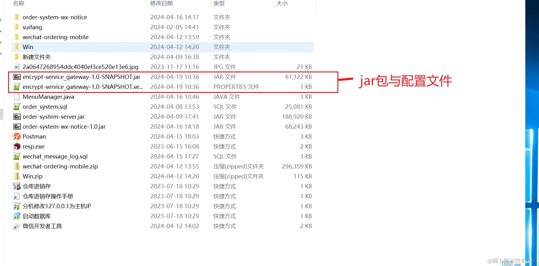 1)将加密后的jar和配置文件一同上传到服务器上,请注意,一定要在用一个文件夹下,如图: