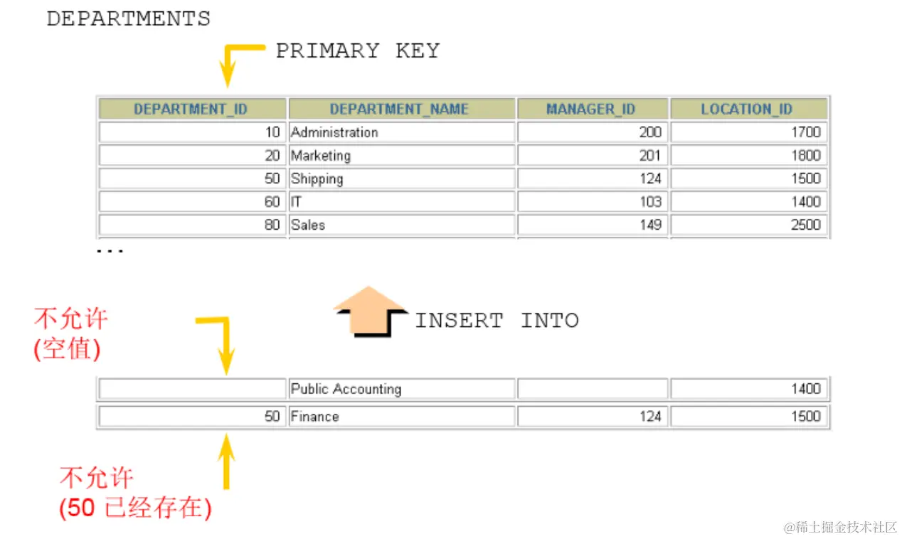 比如:员工表的员工所在部门的选择,必须在部门表能找到对应的部分。
