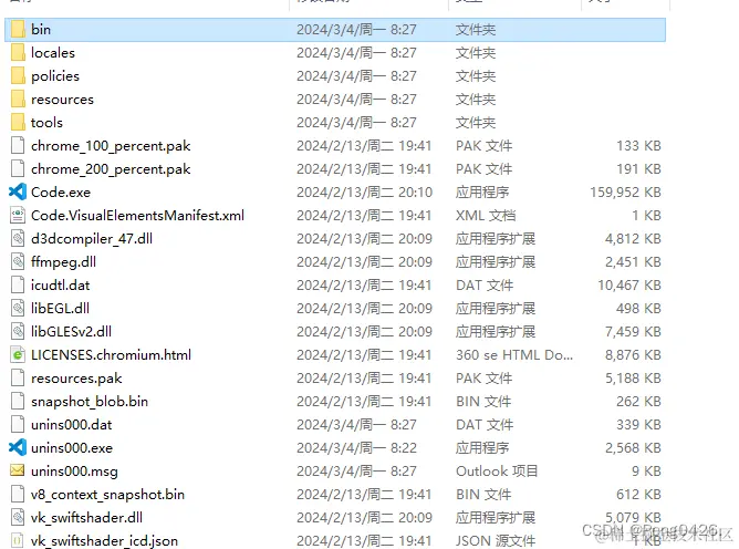 双击bin打开,并复制文件路径 我的是D:\Microsoft VS Code\bin,大家可自行对照