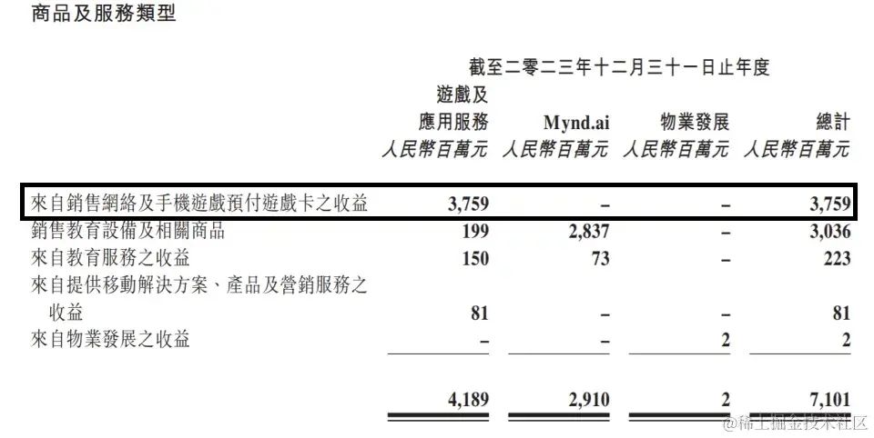 总收益中,“游戏及应用服务”板块收入41.9亿元,占集团总收益的59.0%,经营性分类溢利达到14.0亿元。
