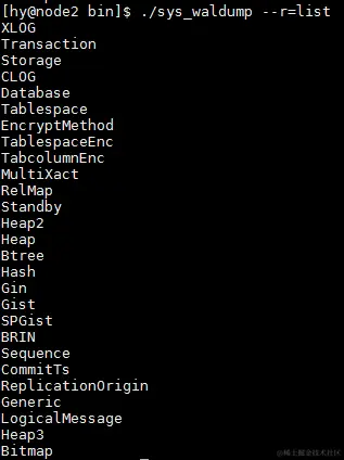 ./sys_waldump --r=list 展示wal中所有的资源管理名称