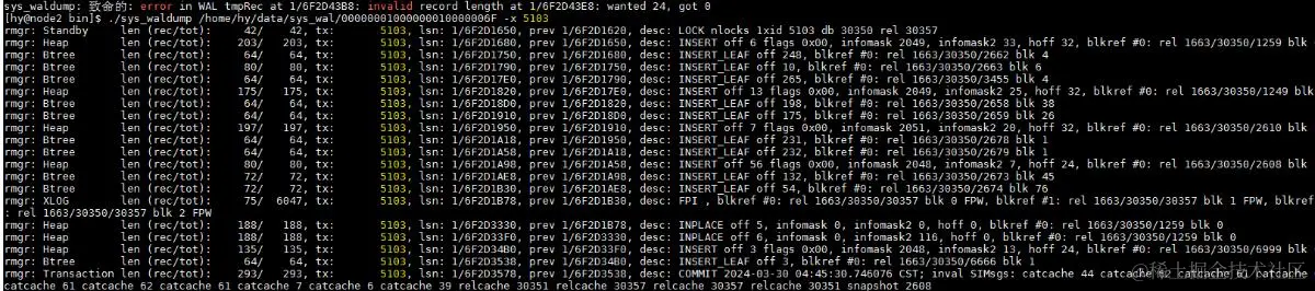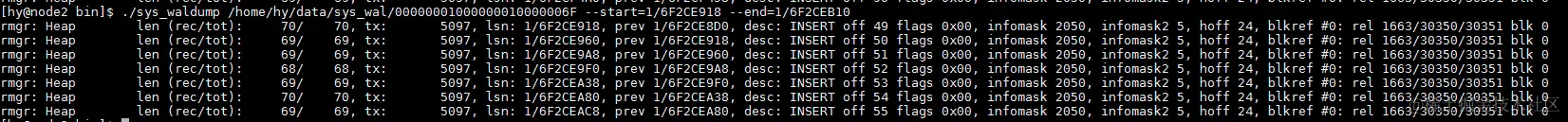 ./sys_waldump {wal日志目录}/00000001000000010000006F --start=1/6F2CE918 --end=1/6F2CEB10