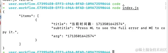 最后我们回到 workflow配置的页面中,将输出的时间戳复制到剪切板中就大功告成了~