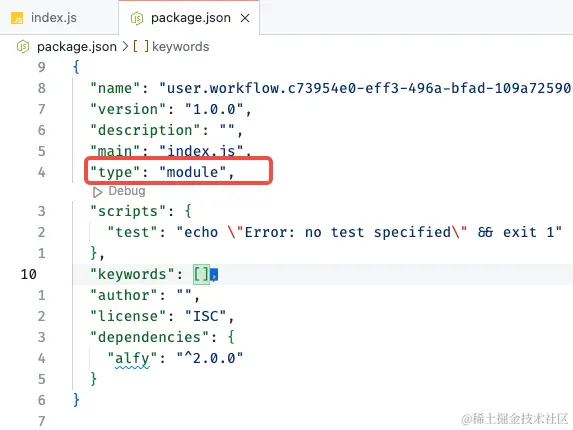 这是因为这个项目的 module 配置问题导致的,我们在 package.json中添加一行