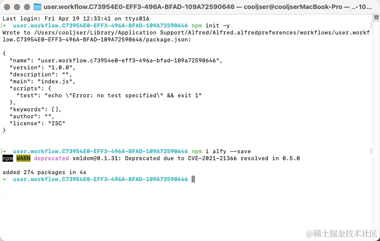 本篇文章记录了使用 nodejs 从 0 开发一个 alfred workflow 的全过程,包括每个具体的操作步骤以及报错的解决方案。虽然实现的 workflow 功能较为简单,但是可以拓宽我们的思路,以后碰到类似的重复性工作时,是否可以考虑编写一个 workflow 脚本来完成呢?好了,这次分享就到这里了。下一篇我将会写一写如何将自己编写的 workflow 打包发布提供给其他人下载使用,敬请期待,可以点个关注哦~