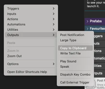 还是右键空白处 Outputs -> Copy to Clipboard,弹出的表单中不用修改配置,直接 Save就行了