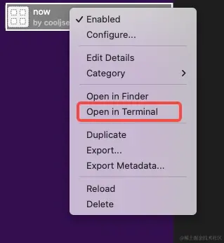 上一步填写完成点击 Save后,我们就可以开始编写代码了,首先我们要找到 workflow 所在的位置。可以右键单击新创建的 workflow然后选择Open in Terminal,就会在终端中打开当前 workflow目录了。