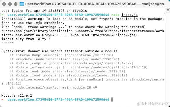 完成后,我们可以尝试执行 node index.js来测试一下是否运行正常,可能会发现这个报错