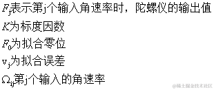 标度因数K(scale factor)也称刻度因子,是指陀螺仪输出量与输入角速率的比值,它是用某一种特定直线的斜率表示,该直线是根据输入角速率范围内测得的输入、输出数据,用最小二乘法拟合求得。