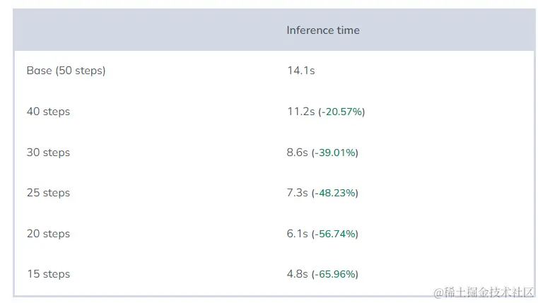 总的来说,根据生成的图像风格,可以选择使用更多或更少的步数。但是,在25-30步时可以获得相当不错的质量。这样做可以将推理时间缩短约40%,是一种相当显著的提升。