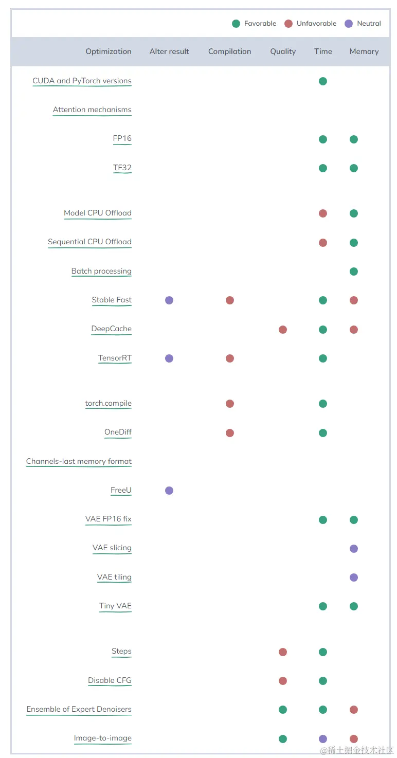 由于本文以脚本/开发为导向,因此将使用Hugging Face的diffusers库。即便如此,了解不同的优化技术及其相互作用将有助于我们在各种应用中充分利用这些技术,例如Automatic1111的Stable Diffusion webUI,尤其是ComfyUI。