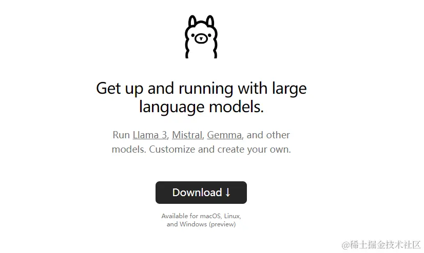 - ollama.com/ 官网首页一进来就可以看到下载按钮,客户端可以在window、mac、linux等进行安装,跨平台的,真的nice啊。