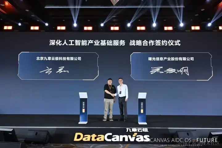 九章云极DataCanvas公司与中科曙光正式签署《深化人工智能产业基础服务》战略合作。双方将在AI基础设施建设领域,开展算力平台「大+小」模型即服务、人工智能软硬一体方案、智算中心联合建设、教育科研方向产品方案共建和联合推广、面向AI训练和推理的高端存储解决方案、面向特定行业的大模型产品和应用场景孵化等范围内的战略合作,满足行业用户全栈AI基础设施需求,推动AI新技术的深入应用和业务模式的创新突破。