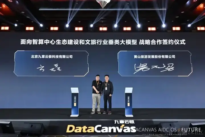 基于大模型领先技术优势和丰厚的智算生态资源,九章云极DataCanvas公司与黄山旅游签署《面向智算中心生态建设和文旅行业垂类大模型》战略合作。本次合作旨在共同探索智算中心建设,为文旅行业用户提供对标国际一流水平的文旅大模型能力和高质量的“算力+算法”一体化服务,吸引人工智能生态企业聚集,推动人工智能成为黄山市新质生产力发展的澎湃动力。