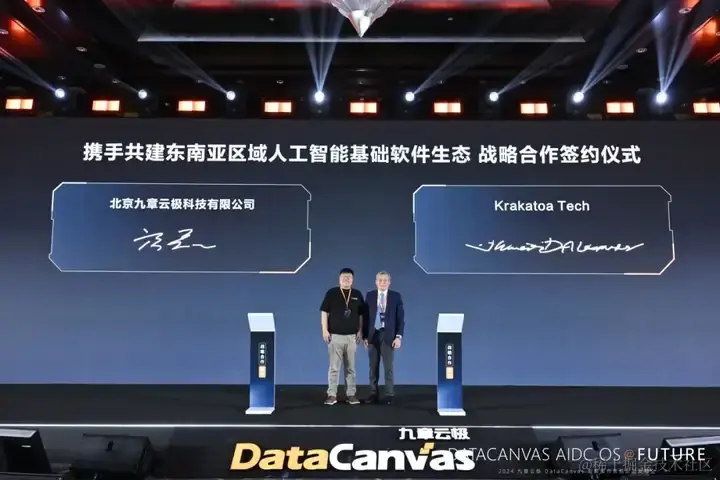 九章云极DataCanvas公司与国际领先的新加坡科技企业Krakatoa Tech公司签署《携手共建东南亚区域人工智能基础软件生态》战略合作协议。根据协议,双方将合作推动打造技术领先的、自主可控的创新型智算中心软件操作系统和人工智能平台,进一步促进东南亚区域的通用大模型、垂直业务大模型及小模型等人工智能技术创新应用及产业智能化转型,联合印尼电信Telkomsel共同打造具有东南亚区域影响力的人工智能基础软件创新示范区。